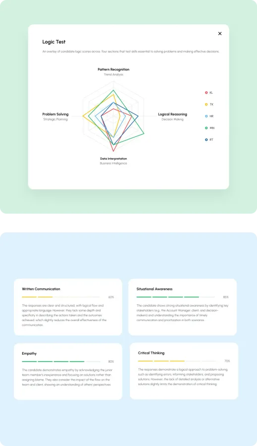 Cognitive ability is one of the single most powerful predictors of job performance. Our Logic Test evaluates a candidate's capacity for pattern recognition, logical reasoning, and data interpretation, giving you a clear view of their problem-solving potential.